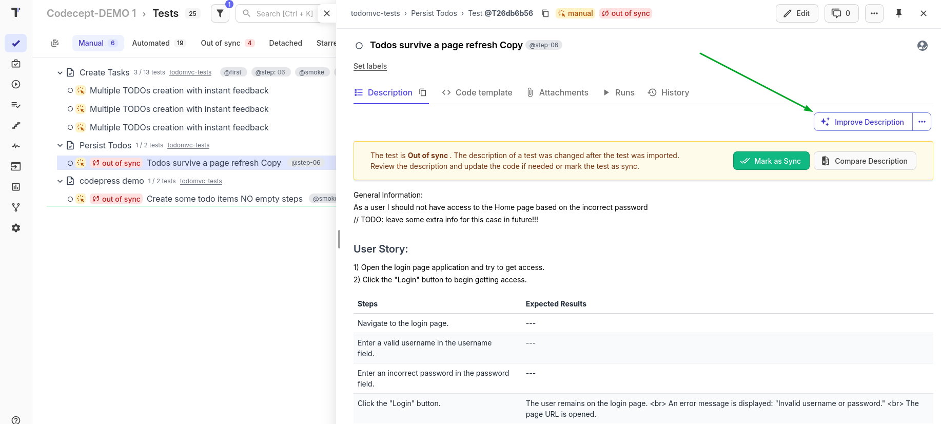 Once you have generated test titles, you can instantly expand them into full, structured test cases. Click “Suggest Description”, and AI will produce: