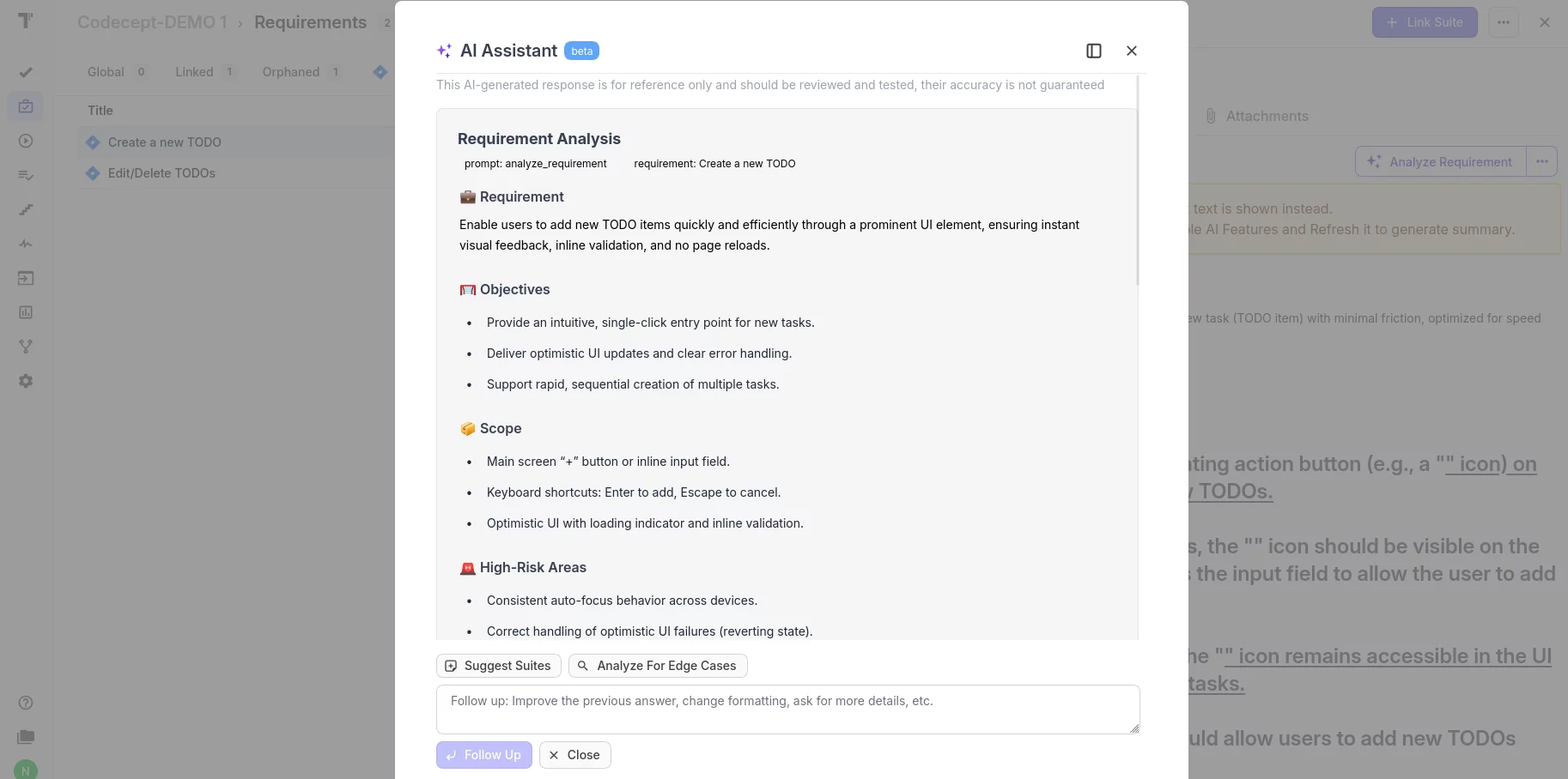 It’s like having the creative brainstorming power of ChatGPT combined with the structured, enterprise-ready capabilities of a dedicated test management platform. Best of both worlds!