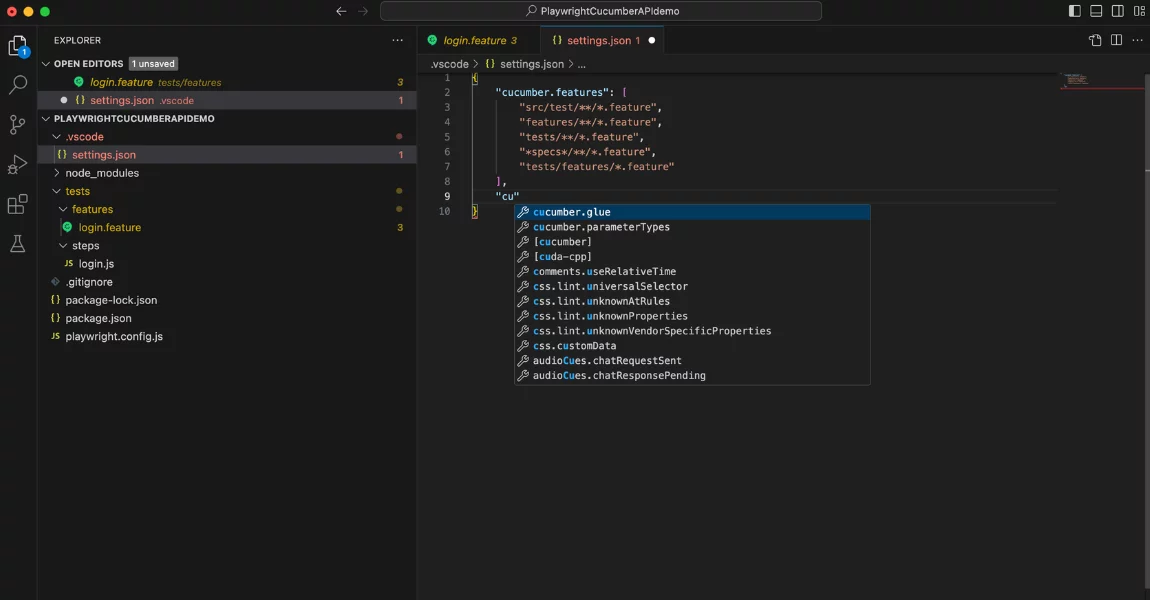 Also, add the Cucumber extension to your VSCode: