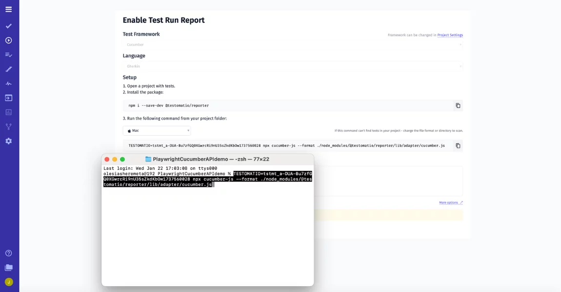 Similarly, with UI tips our test management suggests – launch a test execution of your Cucumber API Playwright framework.