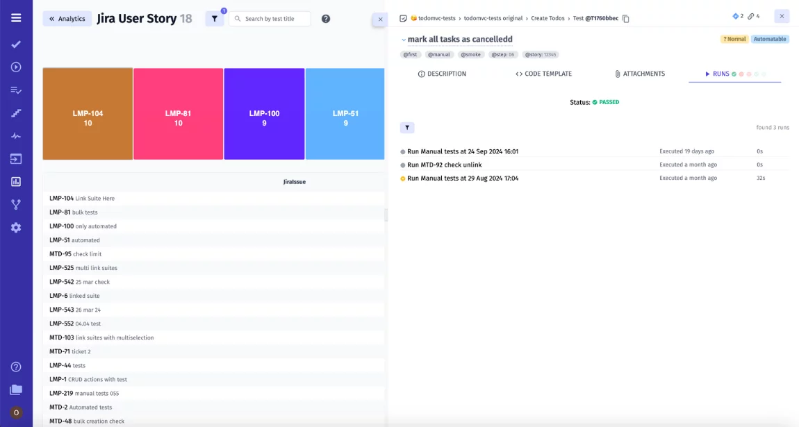 The highlight is that you can execute tests directly with Jira, without switching to the test management system, even on CI\CD pipelines. This feature makes it easy to engage non-technical team members like Project Managers (PM) and Business Analysts (BA) in the testing process, streamlining collaboration across the Agile team.