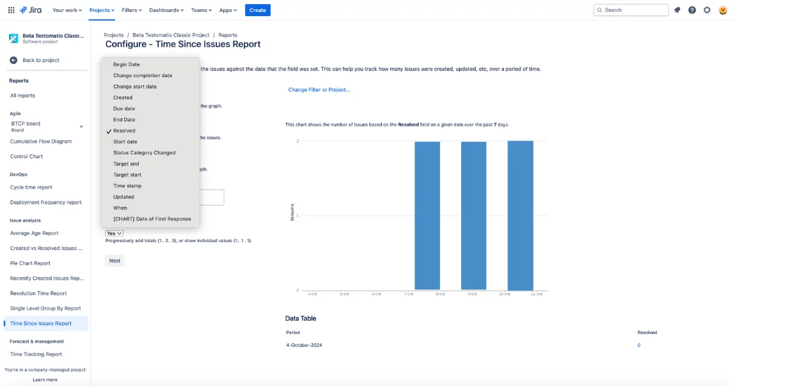 Recently Created Issues Report – One of the Jira Bug Reports. By generating this report, you can track the number of recently created issues and the number of resolved issues for the same given time period. This information helps determine whether the team is managing existing tasks or if workload management optimization is needed.
