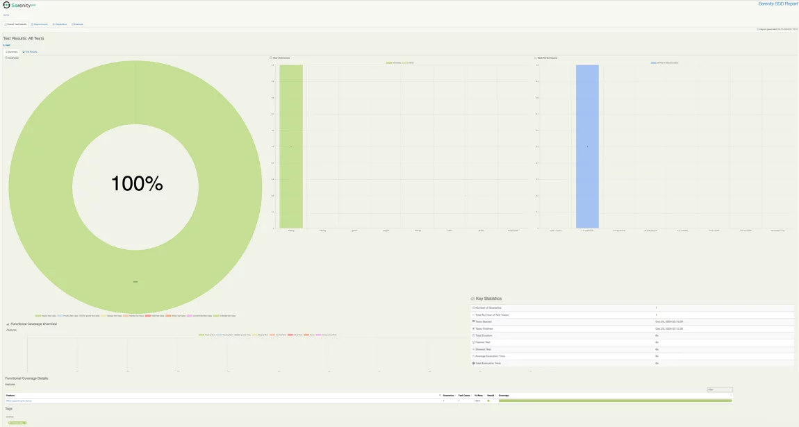 With the Gherkin language, an ordinary language parser, when complex testing information might be scripted almost in English. Also, it is important to mention that Serenity BDD not only reports on what requirements were tested, but how they were tested. It truly documents what your application does with optional screenshots that present step-by-step details of how a test played out.