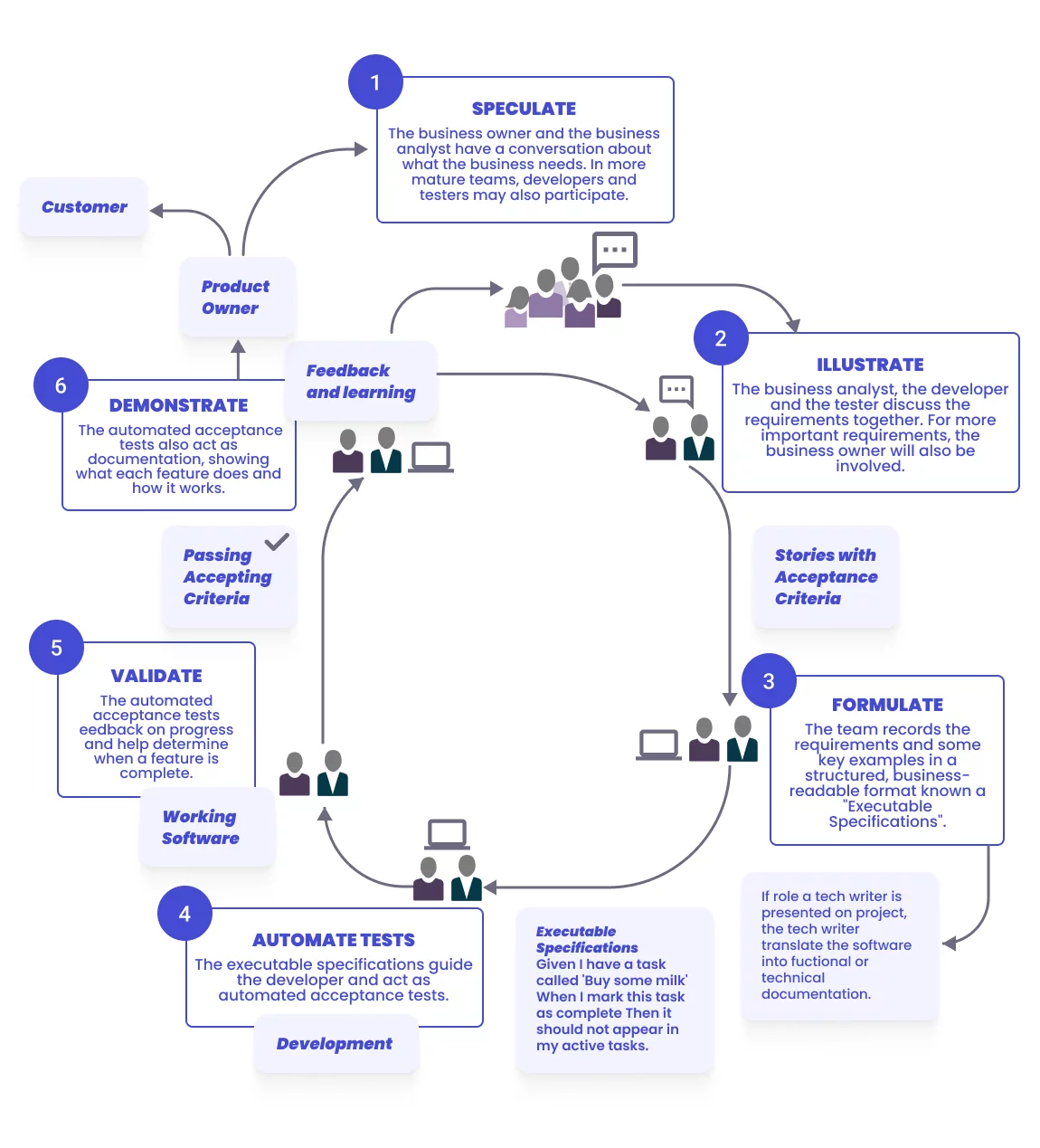 ⬇️ Let’s define: What is BDD behavior driven development? and How does it work? Discover our visualization of the BDD development process below 👀
