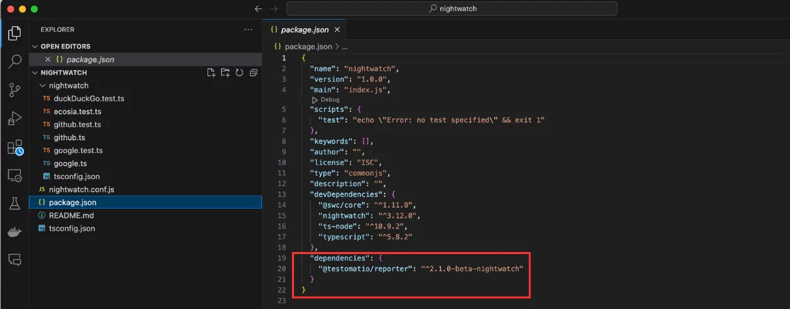 At first, enable the reporter module in your Nightwatch repository, use one of your favorite package managers: