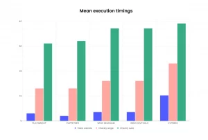 Thus, Playwright takes the leading position in real-world scenarios. It consistently demonstrates faster execution in all three cases. In real-world situations, it showed the highest stability (least variability) in execution time.