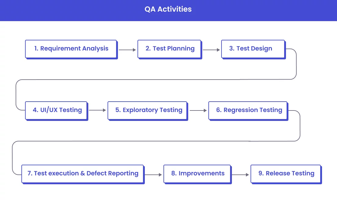 Quality Assurance is characterized by the fact that all actions span different times across the entire SDLC and take place throughout the entire development process of the digital solution. Specialists must continuously pay attention to QA activities to prevent problems and ensure an adequate level of product quality.