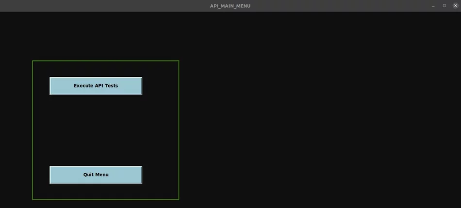 If you click on the Execute API Tests, you should be brought to the screen initialized in the execute_api.py file. In the case you click on Quit Menu, the app will be closed.