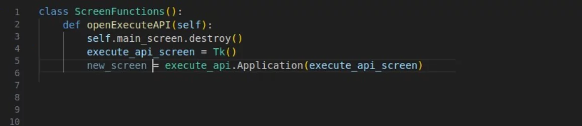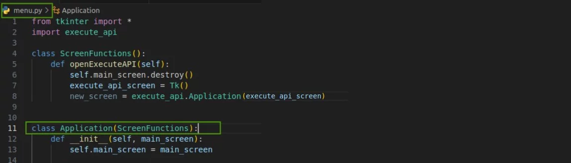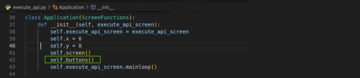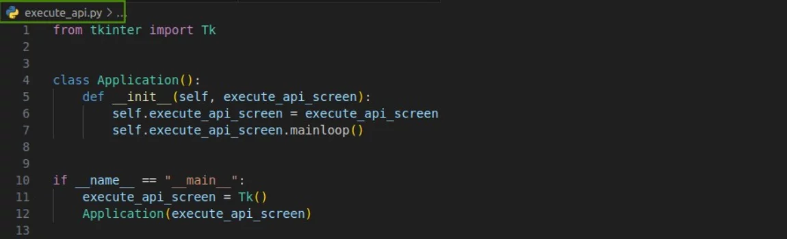 Now, create a new file under the APP folder called execute_api.py. Under this file (execute_api.py), import the lib Tk and then create a class also called as Application in which you should write the following code: