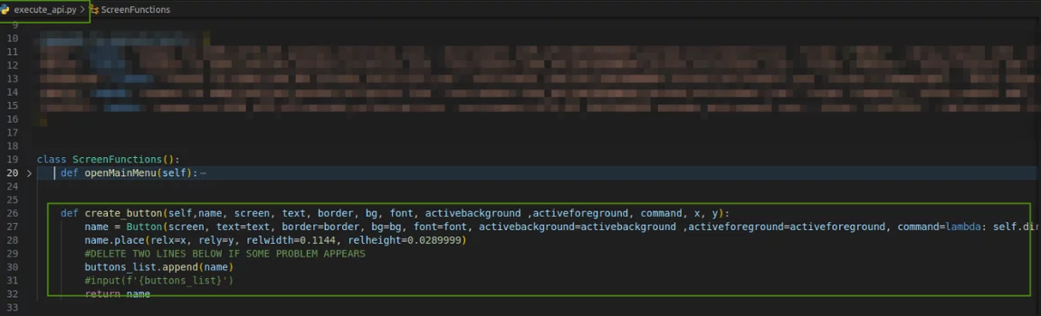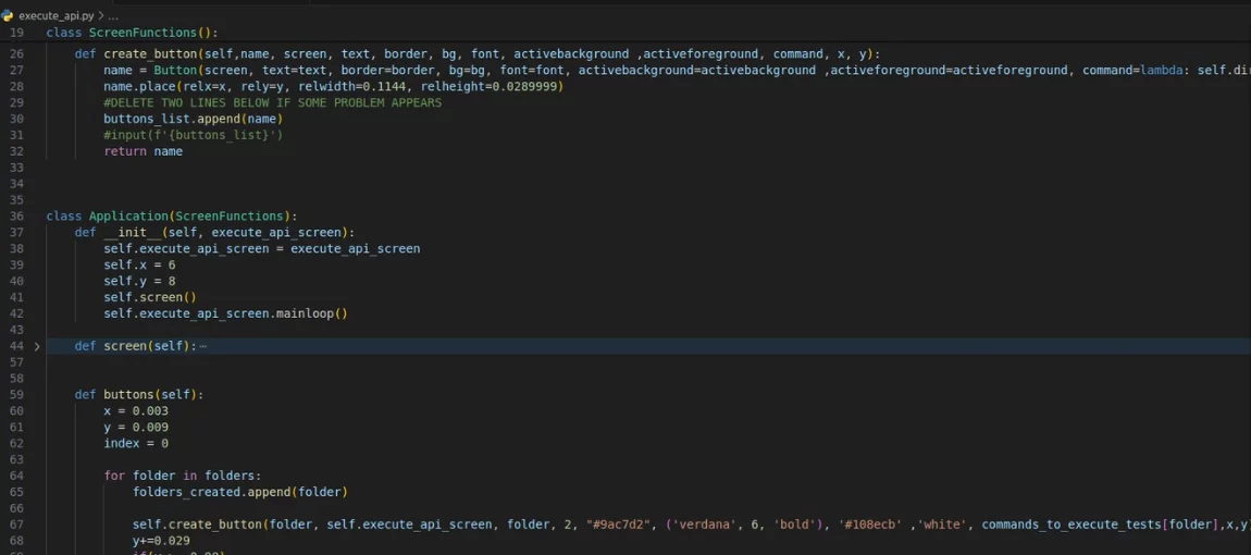 , create a new class called ScreenFunctions(), in which you put all the methods to redirect to the API tests page when we click on the button self.execute_api_tests