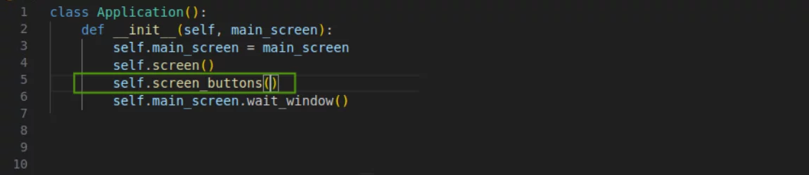 Now, within the Application class, create a method called buttons which will be in charge of the creation of the buttons displayed on the screen.