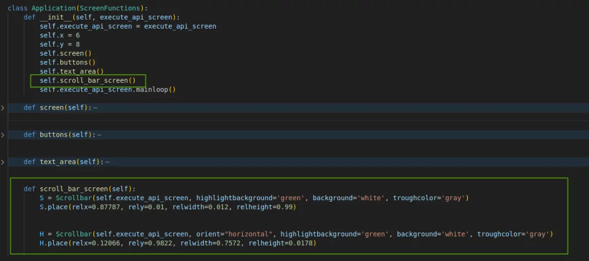 , it will be used to scroll up and down the text area for looking at the output information from Newman execution (also call it in the initialization of the class Application):