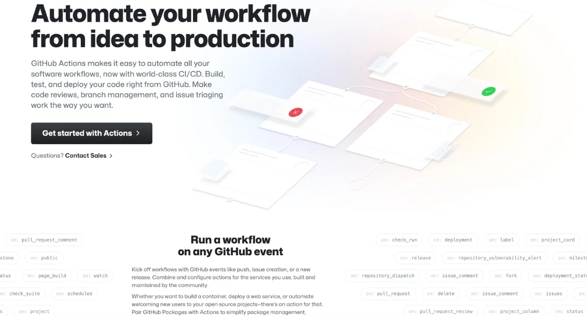 - Wide Range of Triggers. Supports various event triggers, such as code pushes, pull requests, issues, and more, to automate processes.