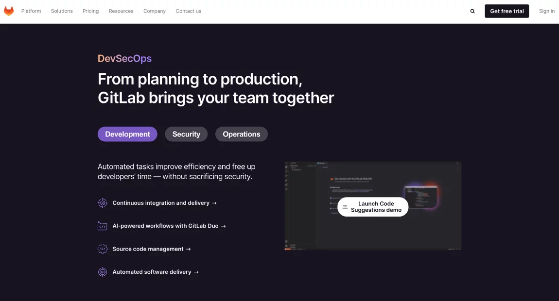 - Comprehensive DevOps Platform. Combines version control, issue tracking, and continuous integration in one application.