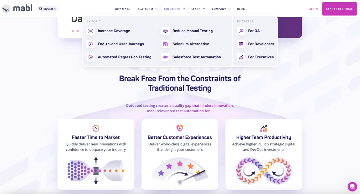 - Self-Healing Tests. Using AI, Mabl automatically adjusts test cases to keep them up-to-date after code changes.