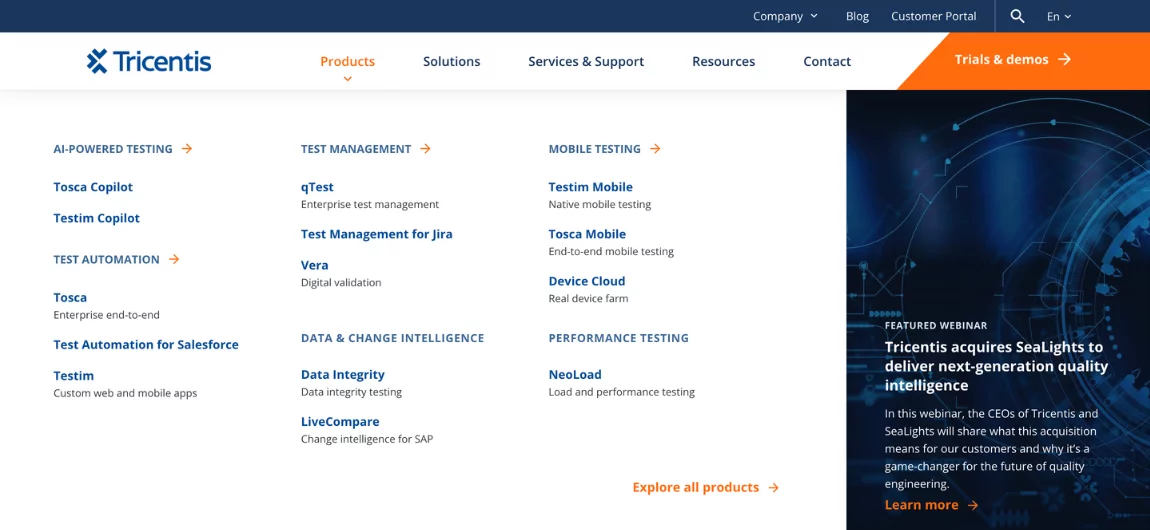 This is a cloud-based platform for testing needs that supports automation of performance and functional testing of web applications. Its unique feature lies in using artificial intelligence and machine learning for quality assurance processes.