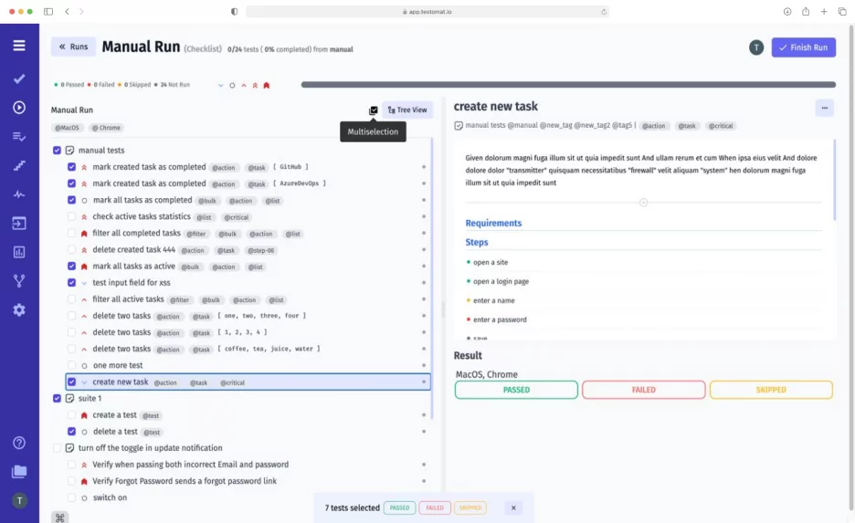 Thus, the Multiselection Mode to organize test cases saves you time and makes the testing process even more efficient. During the work, we suggest using other functions as well.